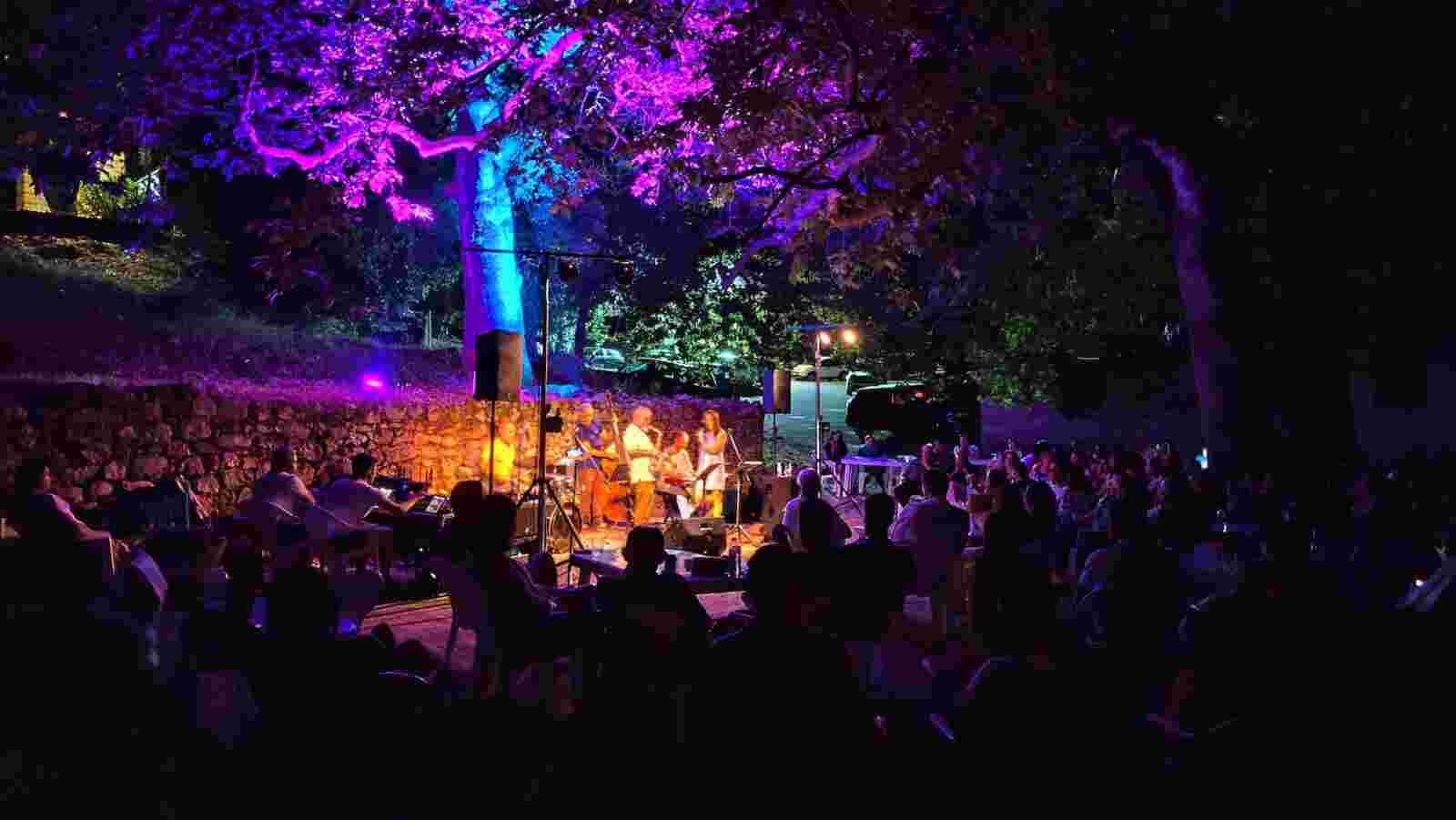 The small – almost abandoned – village undergoes a cultural resurrection as the result of the work of an active association of former villagers and descendants. The challenge was to transition from the traditional village festival to a more contemporary gathering that would resonate with the younger generation and introduce the small village to a new audience. For the 2025 event, we invited a jazz quintet of renowned musicians (including locals) and co-curated the food stall menu together with the association members and other volunteers. The promo campaign has drawn inspiration from both the kourelou, the traditional woven throw that families used to bring with them to enjoy the festival back in the day and iconic jazz album covers from the ’60s that employed geometric forms in association with the music’s rhythm.