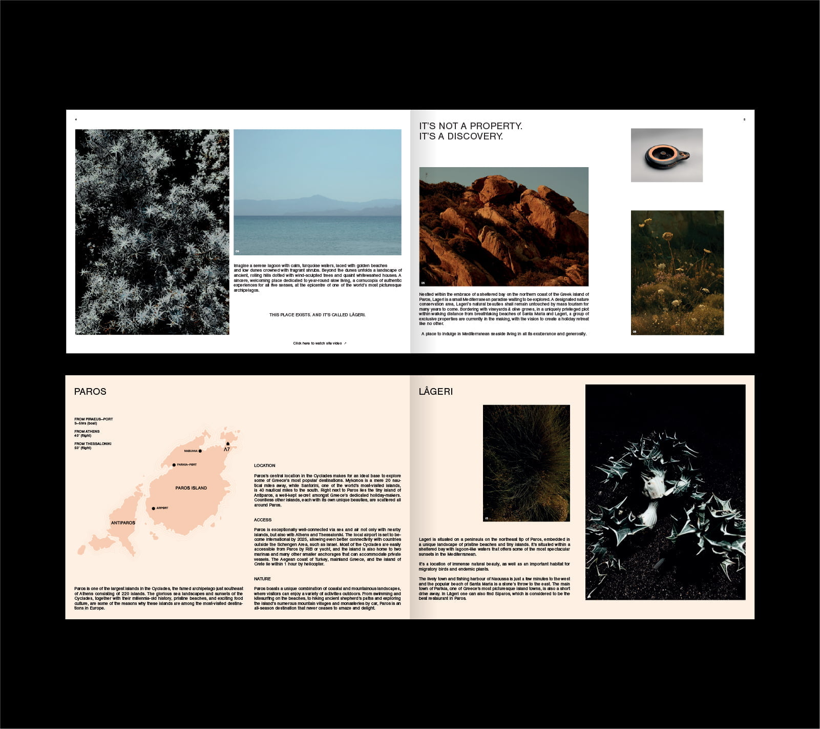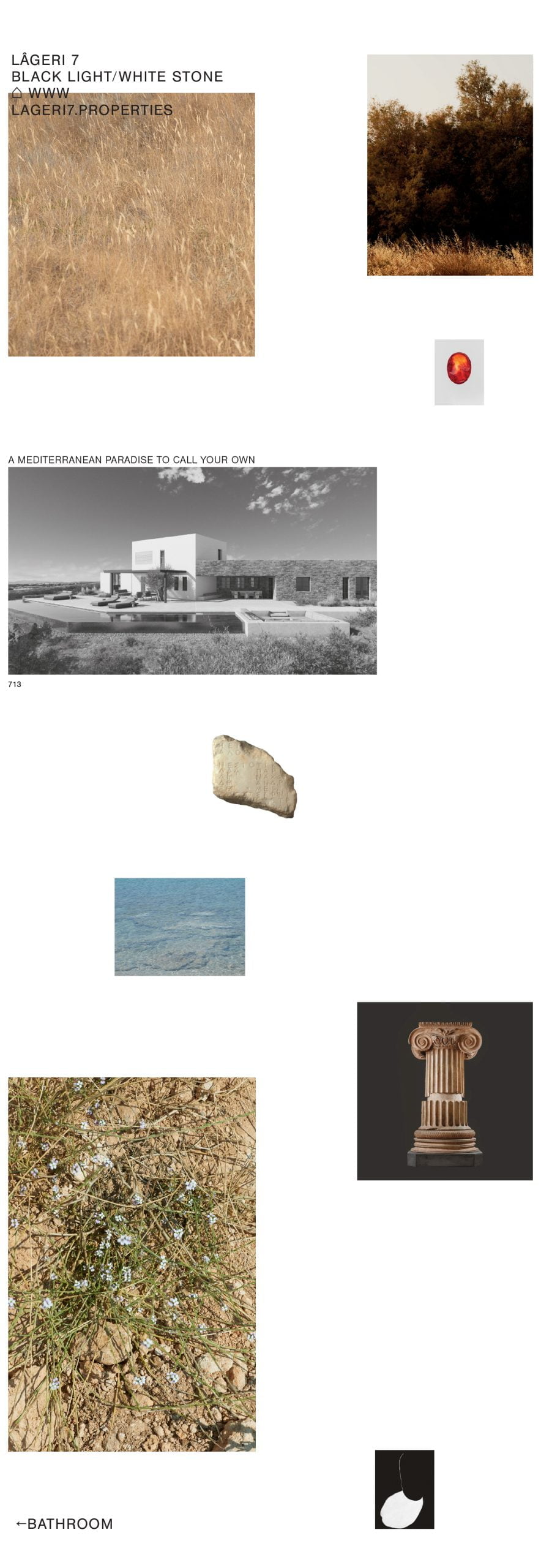 The narrative presents the work not as a property, but as a discovery. Through an approach we call ‘landscape archaeology’, we collected images and objects from the environment and history of the site, developing a ‘cabinet of curiosities’ that can be discovered throughout the promotional material. The name of the project, BLACK LIGHT ⁄ WHITE STONE derives from Parian marble, a transparent rock extremely white that was mined from underground galleries and is now extremely rare.