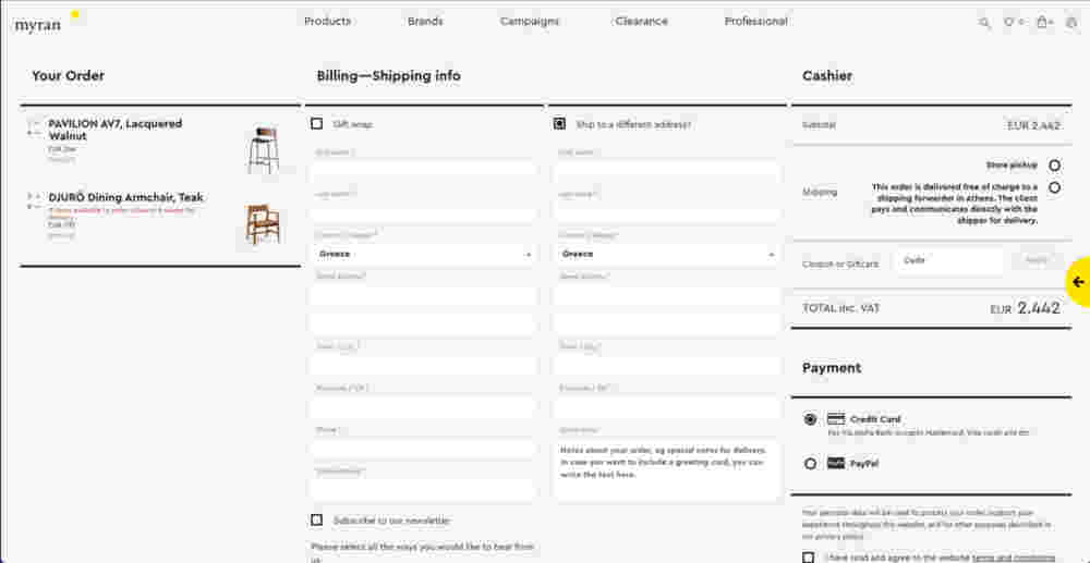 For the new Myran e-shop we employed some of most recent UX practices and patterns for a flawless and pleasurable online shopping experience. From smart product carousels to dynamic “window shopping” blocks and from digital gift card functionality to a customized Architonic catalogue integration, myran.gr is now a top-notch online store with respect to the visitor’s intuition.