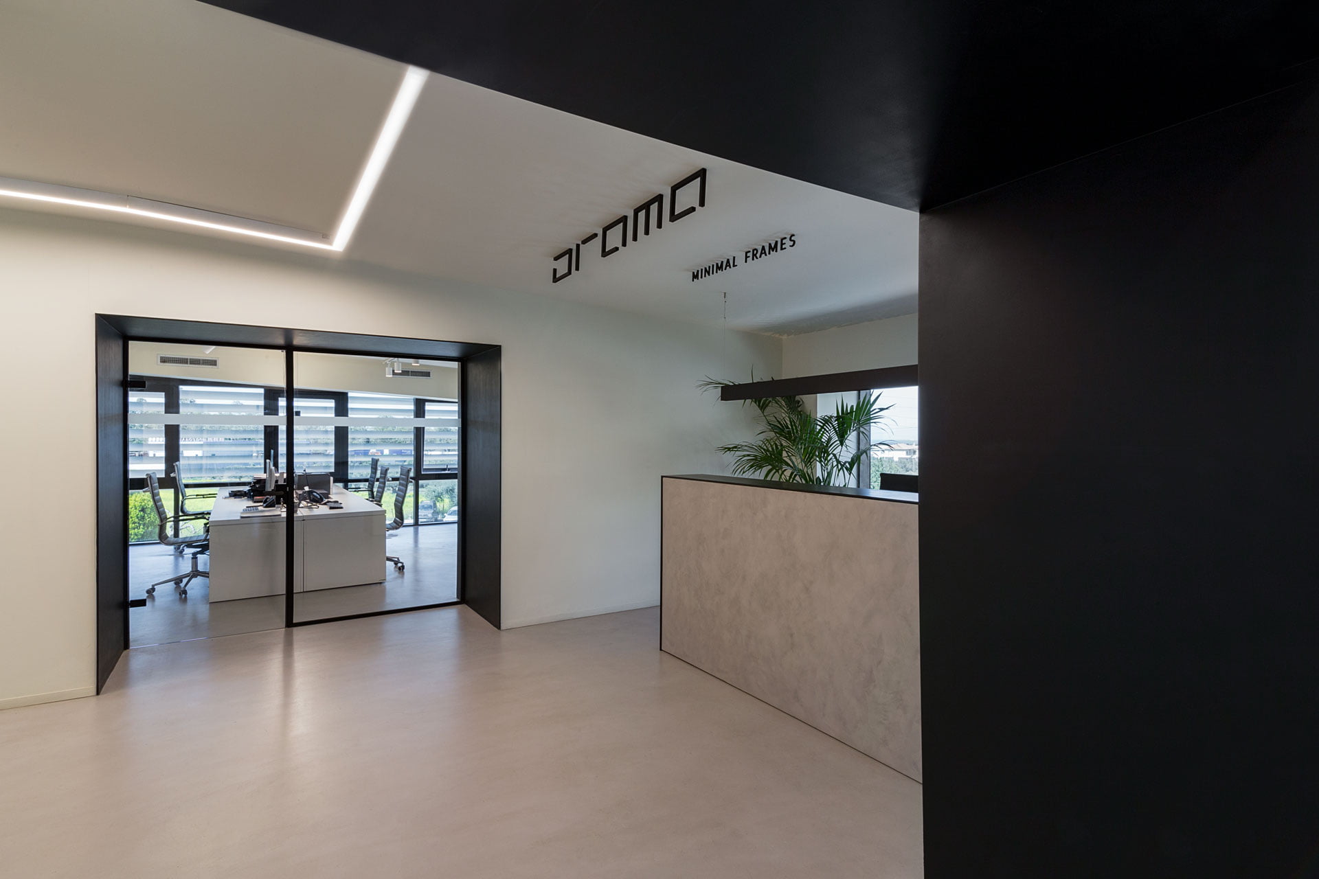 We were assigned to redesign Orama’s headquarters situated within the company’s manufacturing facilities. The main gesture was to rearrange the offices to open to the adjacent factory space and establish a better connection between administration and production. In addition, circulation was improved and new reception, communal and private spaces were introduced. All of this, with the use of Orama’s minimal visual vocabulary.