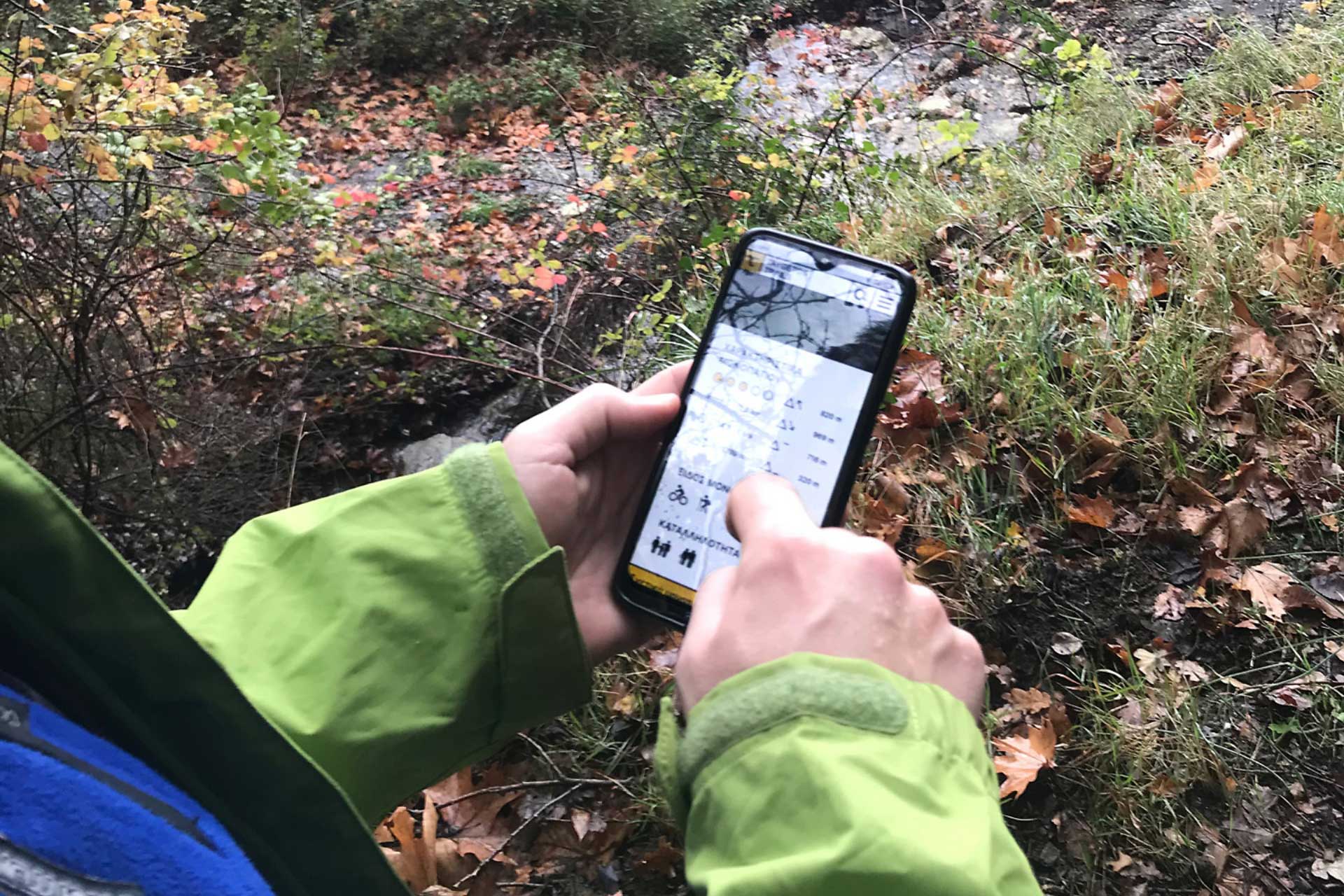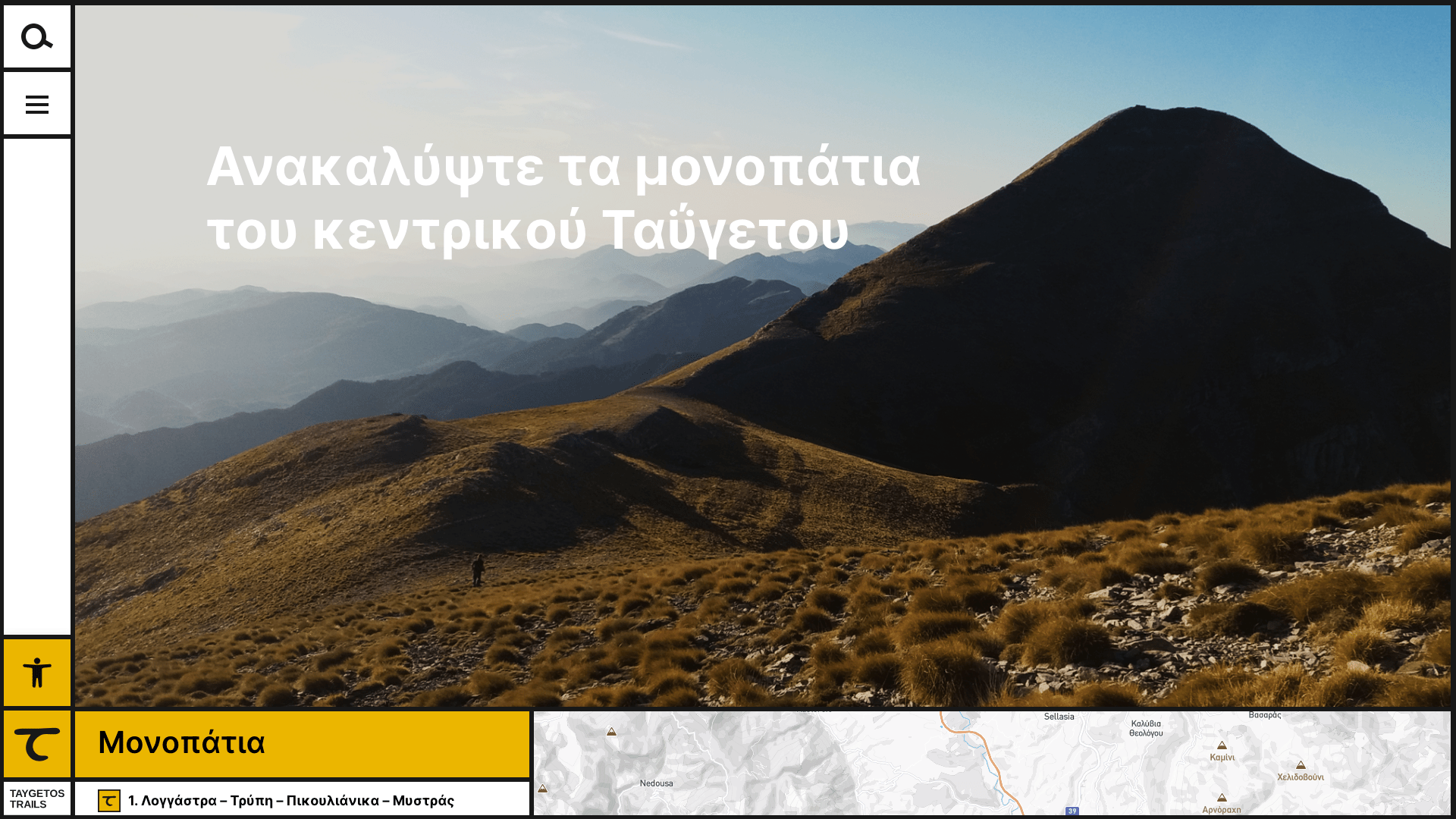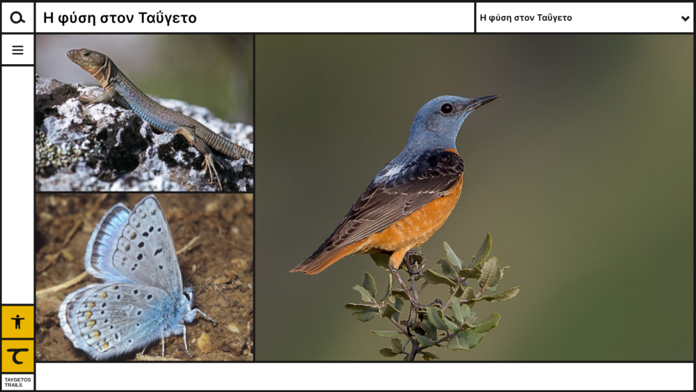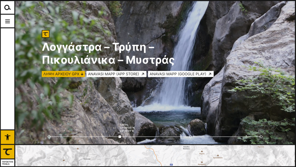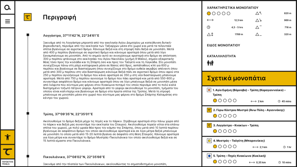 The new visual language was applied in the website by introducing a canvas system with distinct frames creating layouts that refer to an open hiking map. The website presents interactive maps and gives to the user the possibility of uploading files compatible with GPS applications.