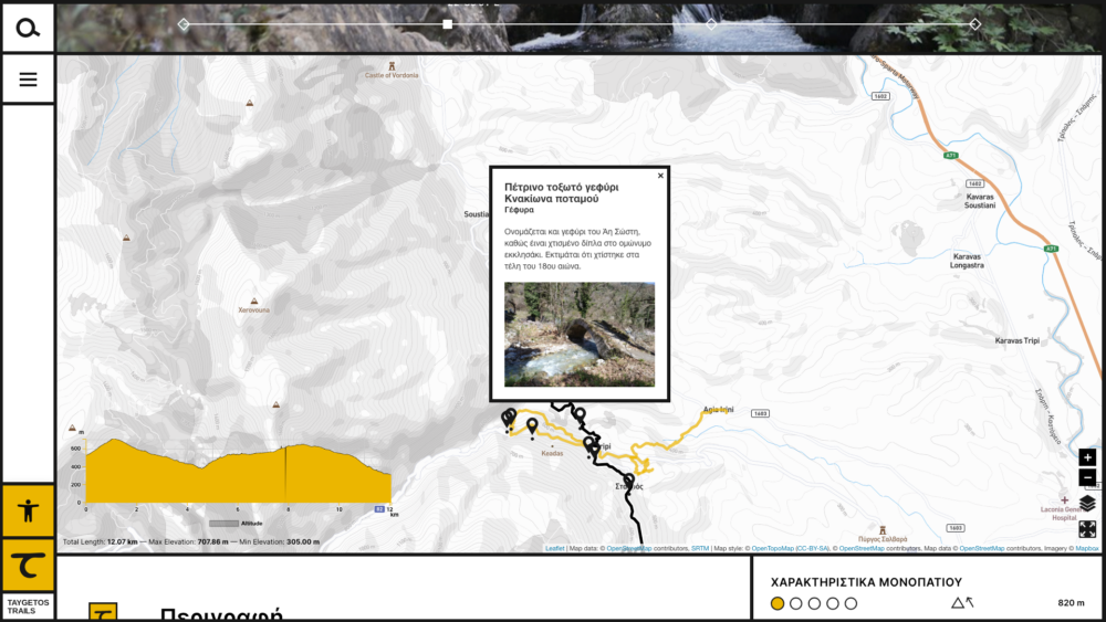 The restoration of the trails is an initiative of the local associations: Sporting Educational Association of Kalyvia Socha, Cultural Association of Mystras, Cultural and Environmental Association “Parori 2011”, Cultural Association of Pikoulianika, Cultural Association of Trypi «Plithon»,Association of Vryseada and Friends of Anavryti “Faneromeni”Σ with the coordination of the Progressive Association of Taygeti (Barsinikos) and Mystras, with the support of the Municipality of Sparta and the Regional Unit of Peloponnese.