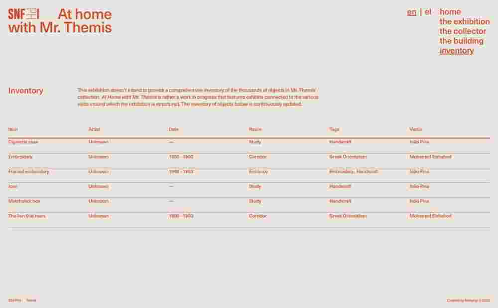 At Home with Mr. Themis is an online exhibition by the Stavros Niarchos Foundation Public Humanities Initiative (SNFPHI), opening Themis Ragias’ apartment in Exarchia and his eclectic personal collection to the public. Bringing together folk art, fine art, books and everyday objects, the collection offers a layered view into Greece’s cultural and economic life. The challenge was to translate this dense, highly personal environment into a digital experience while preserving the feeling of an in-person visit. Rather than creating a fixed archive, we approached the exhibition as an evolving process. We used the visit itself as the core structure, inviting specific visitors to act as archivists, each navigating the space and uncovering stories through their own perspective. To support this, we opted for simple panoramic views that maintain the richness of the apartment without adding visual distortion. The result is an open, growing archive shaped by exploration, proximity, and continuous discovery.