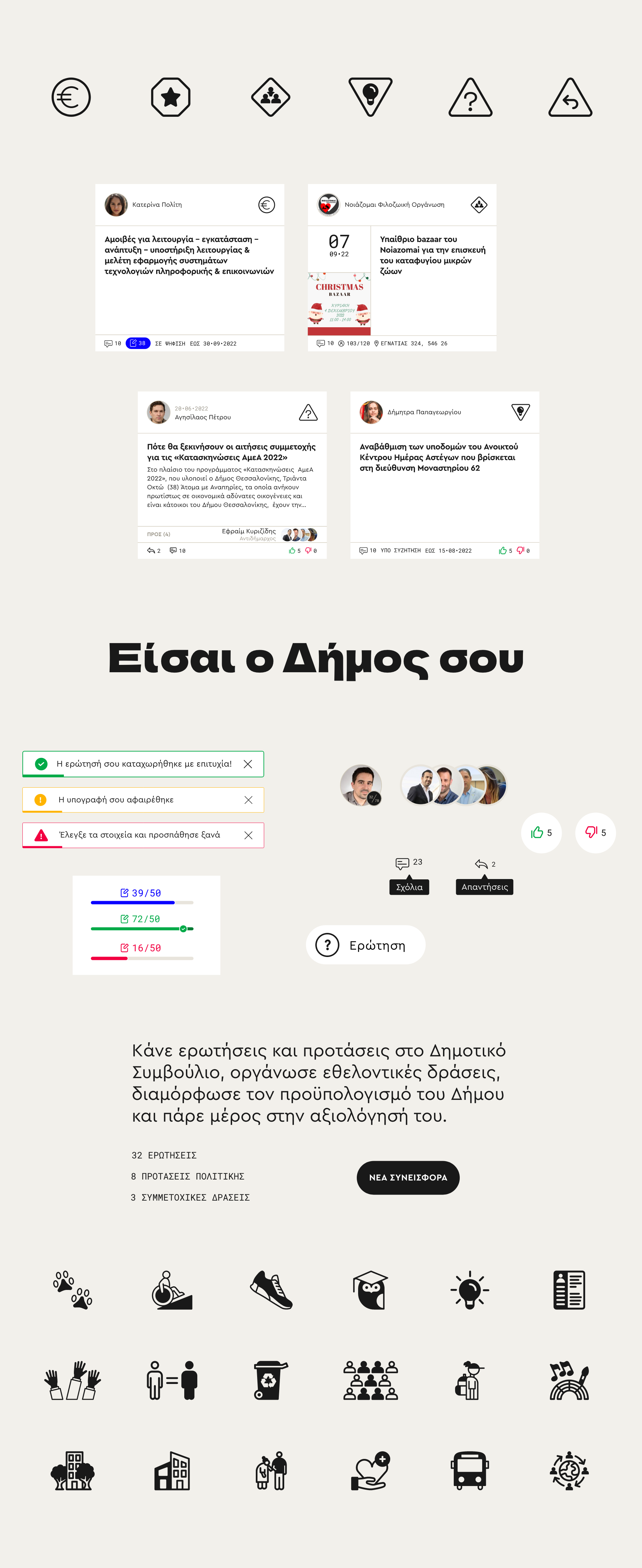 Part of the Active Citizens Fund programme, Localwatch has been conceived as a bottom-up, monitoring and participatory platform similar to Vouliwatch but at a municipality scale. It enables citizens to take action in matters of their local community by embodying open dialogue and direct democracy tactics. At the moment available for the four biggest municipalities of Greece — Athens, Thessaloniki, Patras and Herakleion — Localwatch is build with scalability on mind and it is planned to open to more cities in the near future.