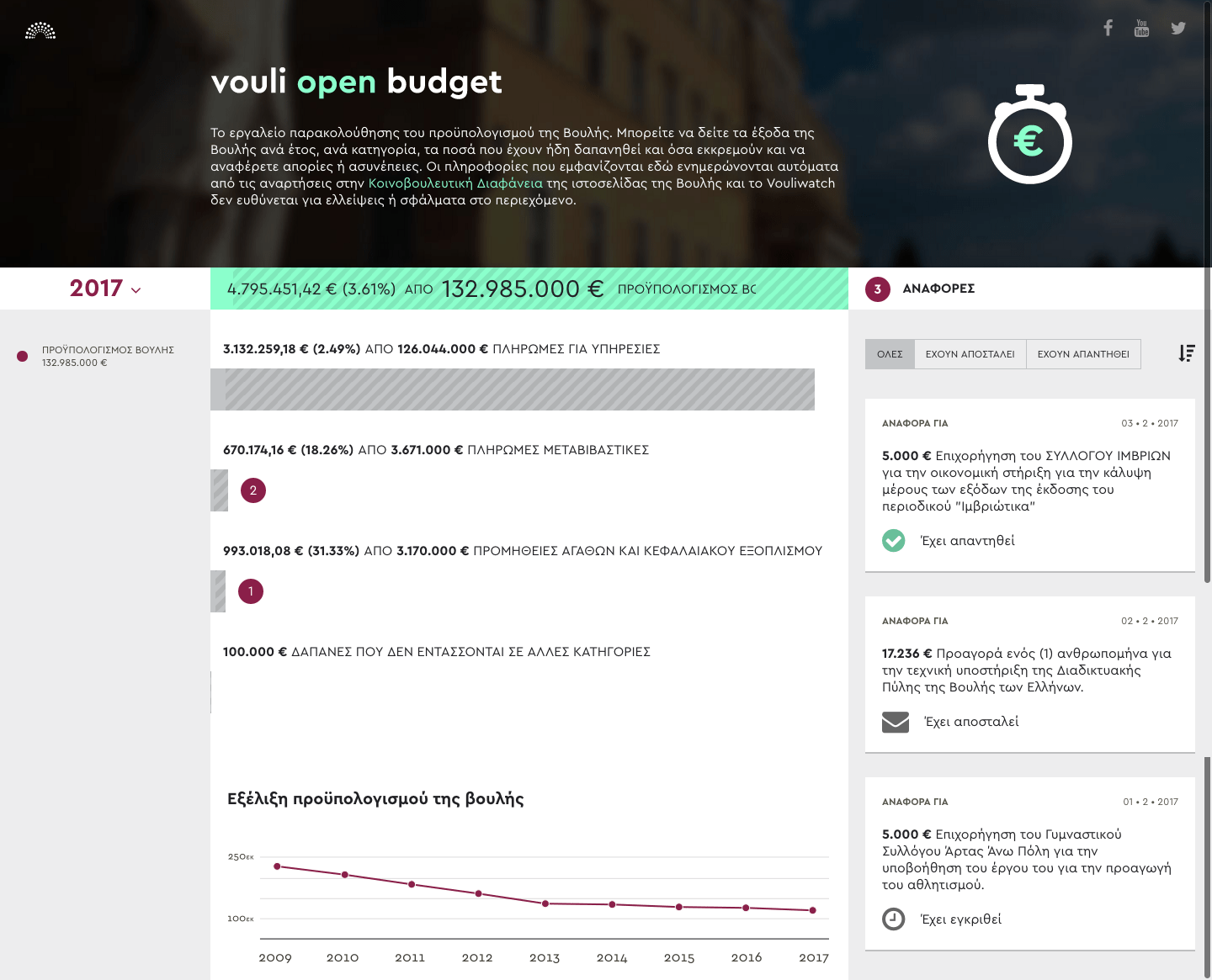 Finally the platform’s users will also be given the opportunity to flag budget and expenses discrepancies that will be forwarded to the Vouliwatch team which in turn will examine the validity of the claim, approve its content and grant the user the option to send the claim to the relevant department of the Greek Parliament.
