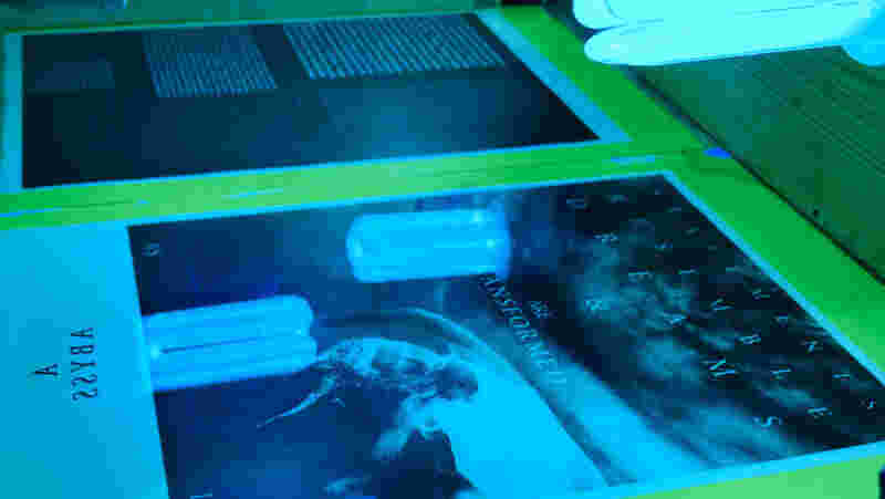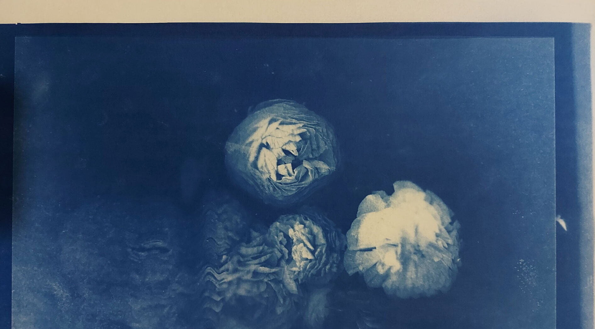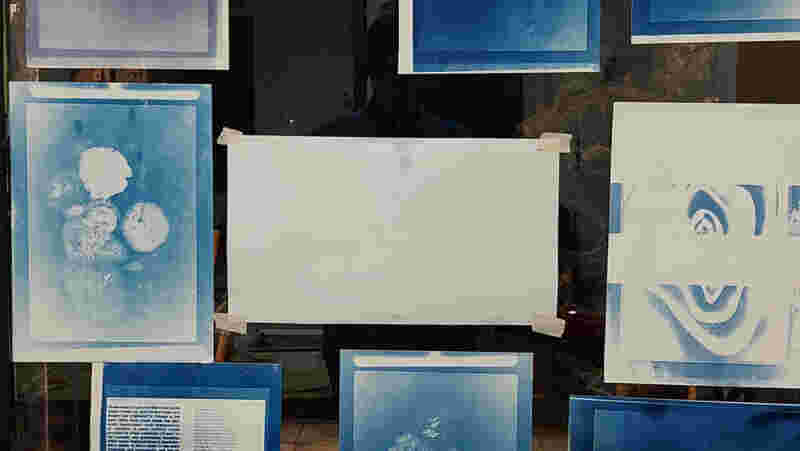 First step was to learn how to prepare a photograph to create a cyanotype negative and then the process of measuring and blending the chemicals to coat the paper. After applying the coat to the paper and let it dry we explored various methods for exposing the paper to UV light whether by using the photograph negatives or alternative objects such us leaves, strings etc.