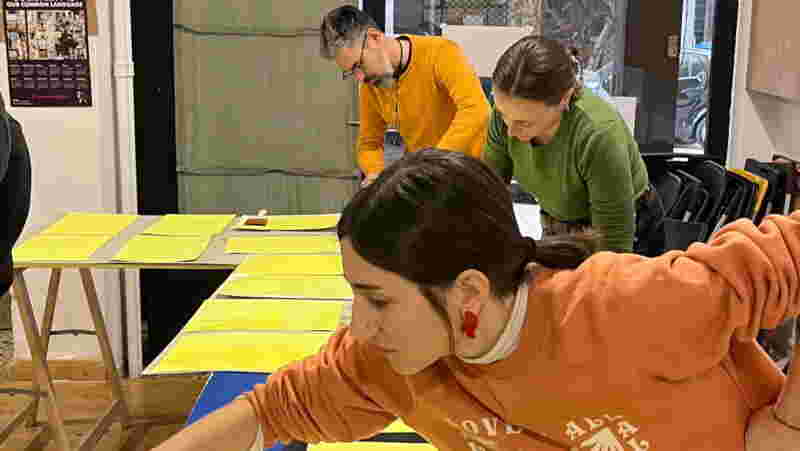 The workshop series is a series of creative workshops varying from paper making and lettering to collage, linocut printmaking, silkscreen printing and much more that we run at our office in a regular basis. Through these workshops we want to explore our creativity using more hands-on practices and develop processes for understanding, developing and supporting mutual learning between our team.