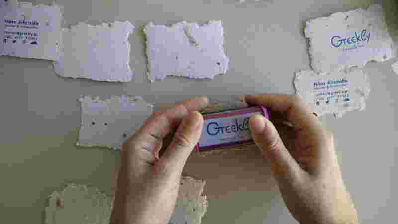 A workshop with the office team is fun! A workshop with the participation of a client is great! A Paper-making Workshop coordinated by Marietta Kallona with the participation of the whole office team and the client is AWESOME! This is all of us creating handmade business cards we designed for the #ecofriendly travel initiative Greekly as part of their visual identity.